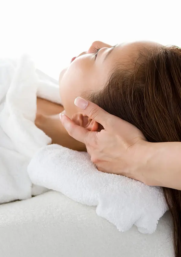 頭部を刺激することで、血行を促進して眼精疲労や頭痛、首・肩こりの改善が期待できます。 筋緊張を緩め、自律神経を整え不眠の解消などの効果が見込めます。
